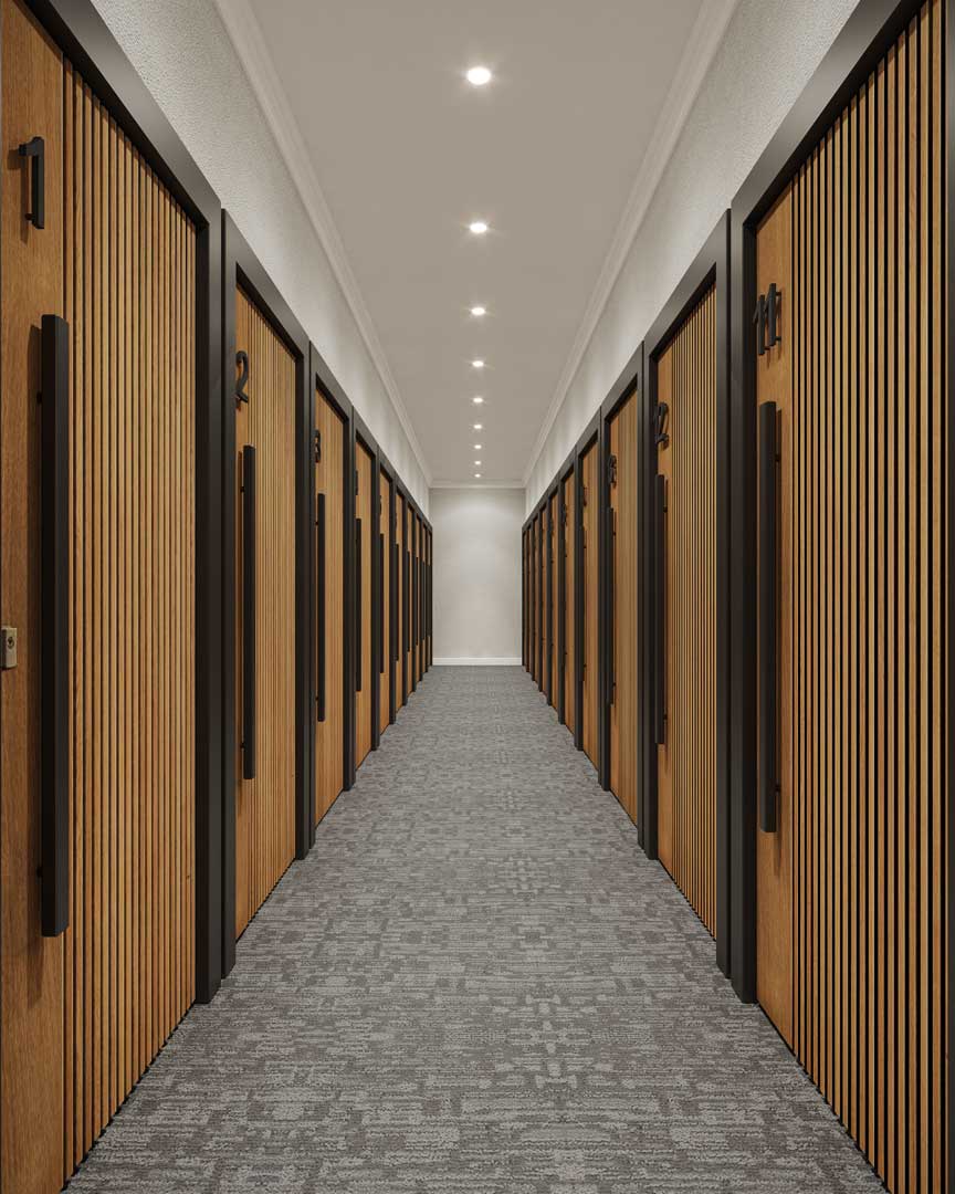 Our bedrooms feature spacious, contemporary designs that effortlessly combine modern aesthetics with comfort, providing a generous haven for relaxation. Walk-in closets provide ample storage, enhancing the overall functionality of these private sanctuaries.